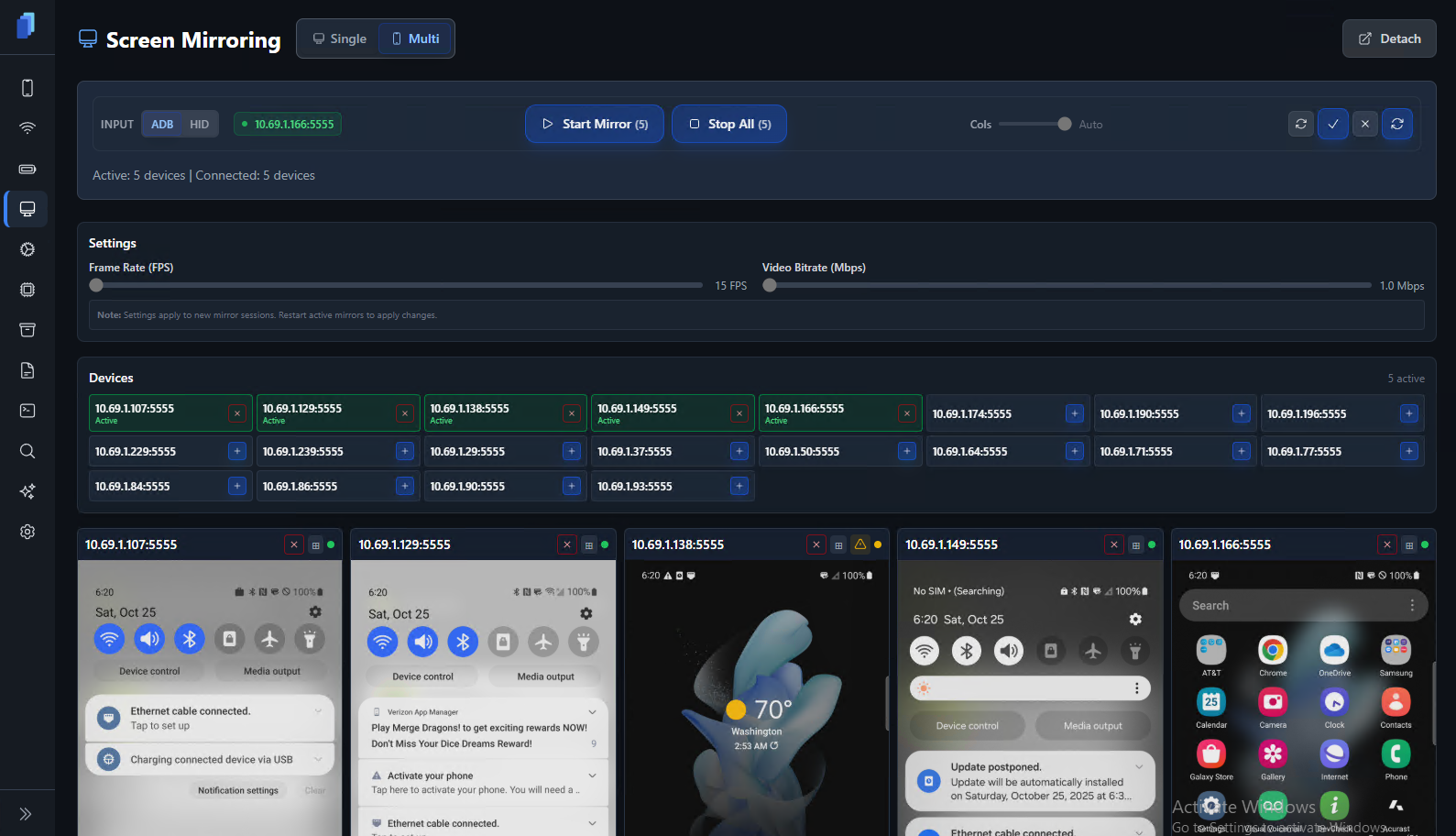 - Connect your devices (via USB, Ethernet, or Wireless ADB).